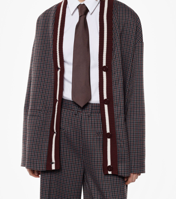Blazer à la coupe moderne, orné d’un motif carreaux et de bordures côtelées contrastantes, fermé par un boutonnage simple. Sa silhouette ample et ses poches plaquées incarnent une allure distinctive, idéale pour sublimer les tenues formelles et affirmer sa personnalité.