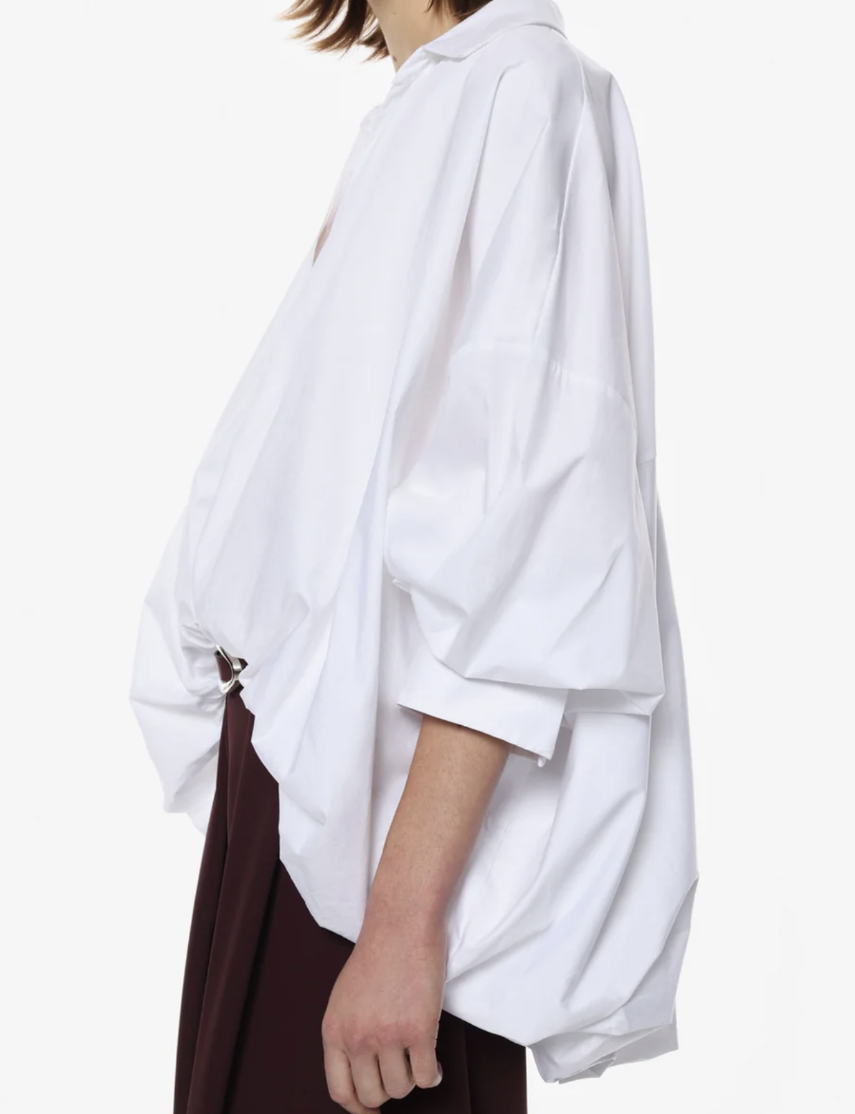 Adoptez une allure moderne et décontractée avec ce chemisier oversize signé Imperial. Conçu dans un coton pur au tombé fluide, il séduit par son col à pointe souple et son décolleté poitrine qui apportent une touche féminine assumée. Sans boutonnage, il s’enfile facilement et s’adapte à vos envies de style. Les manches 3/4 à poignet napolitain boutonné ajoutent une finition raffinée, tandis que l’ourlet élastiqué offre un volume maîtrisé et structure la silhouette. L’asymétrie, avec un dos plus long, confère un esprit contemporain et élégant.