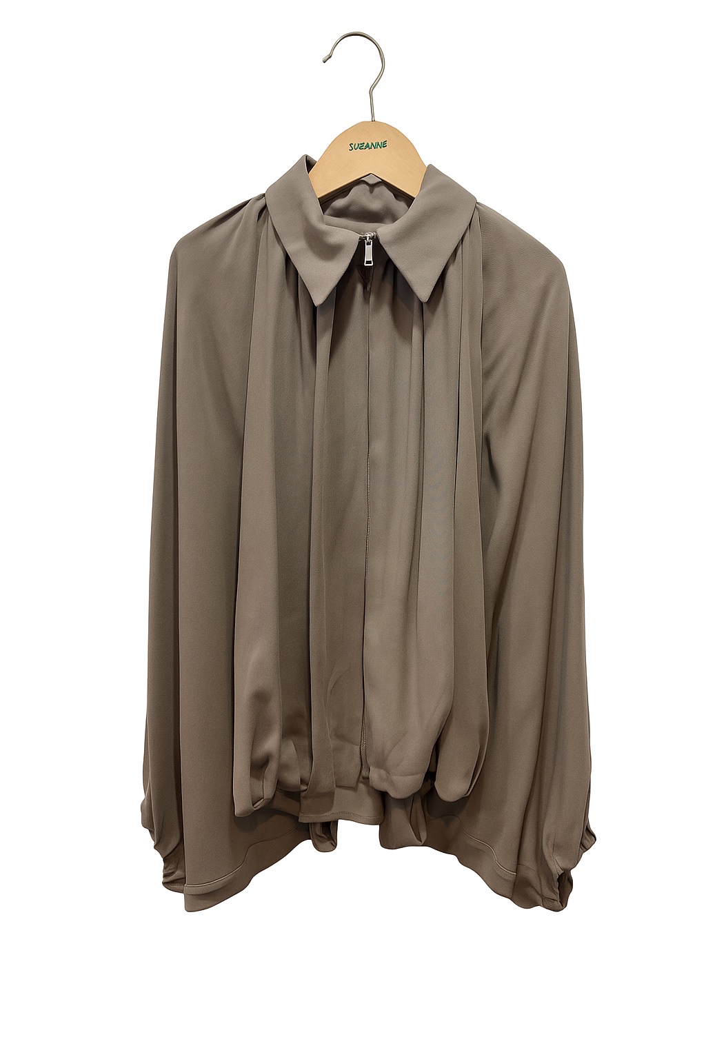 Cette veste se distingue par son jeu de plis délicats qui apporte mouvement et raffinement. La finition plissée sur l’avant créé une silhouette subtilement sophistiquée.